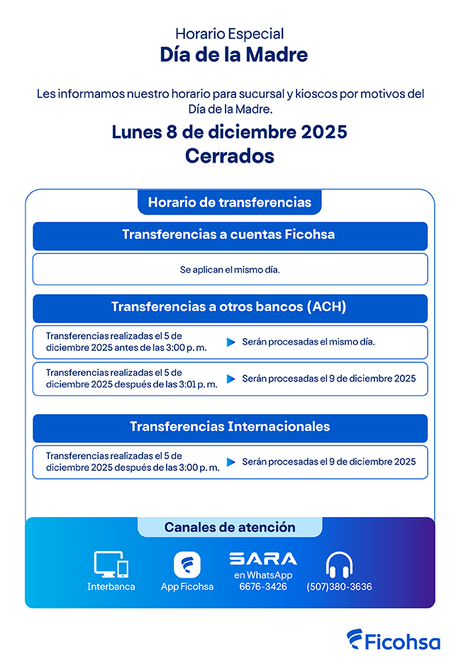 En Banco Ficohsa Panamá protegemos tu privacidad. Lee y acepta nuestras políticas de uso y protección de datos.
