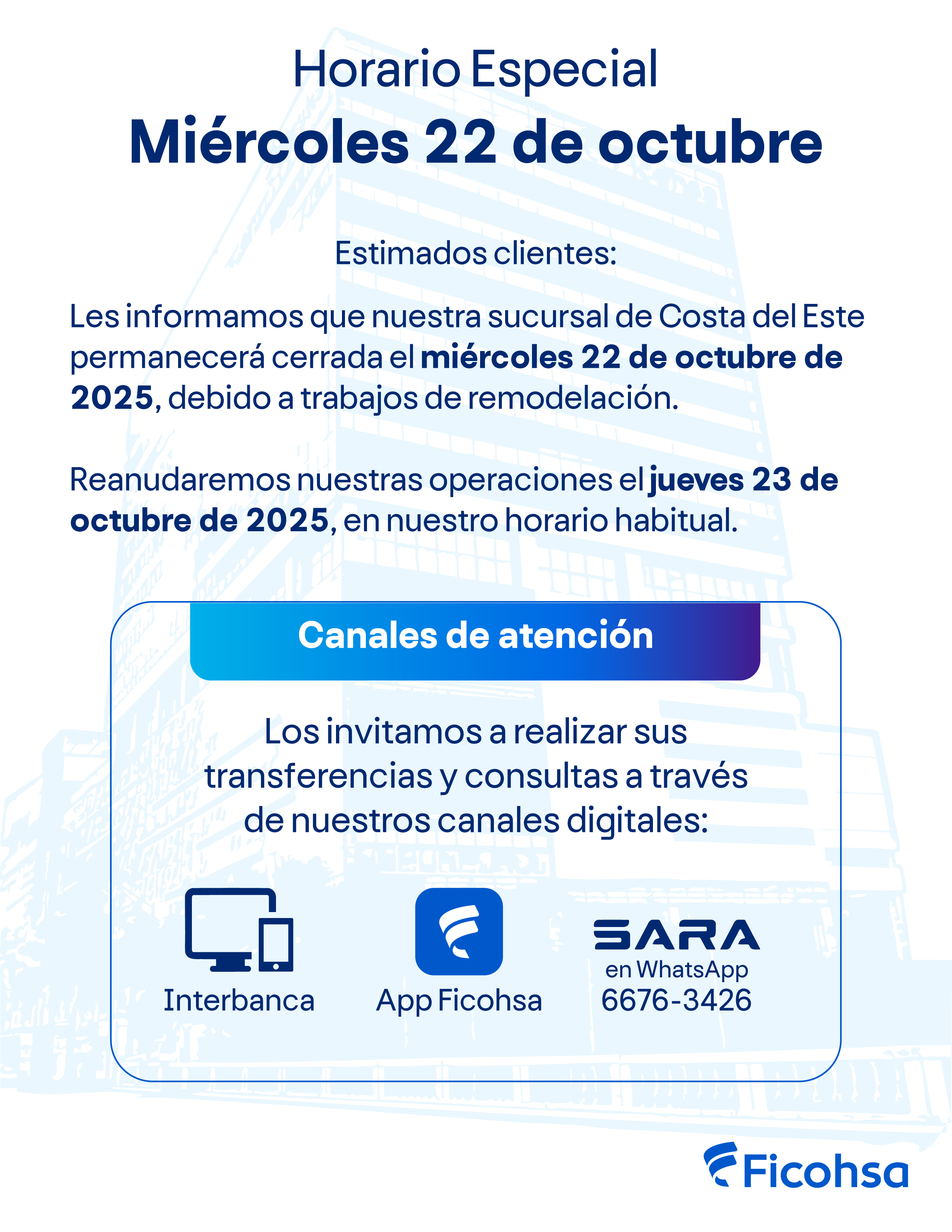 En Banco Ficohsa Panamá protegemos tu privacidad. Lee y acepta nuestras políticas de uso y protección de datos.